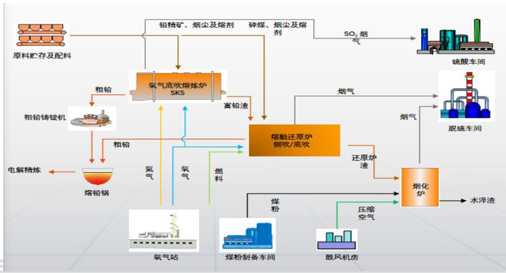3. 铅渣、铅银渣回收:最经济的方法是搭配硫化矿处理;如铅渣产量大,且周边缺乏矿铅冶炼协同,可以考虑单独的铅渣还原熔炼。