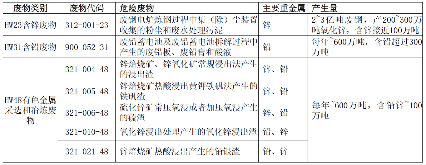 1 铅锌冶炼含重金属危险废物